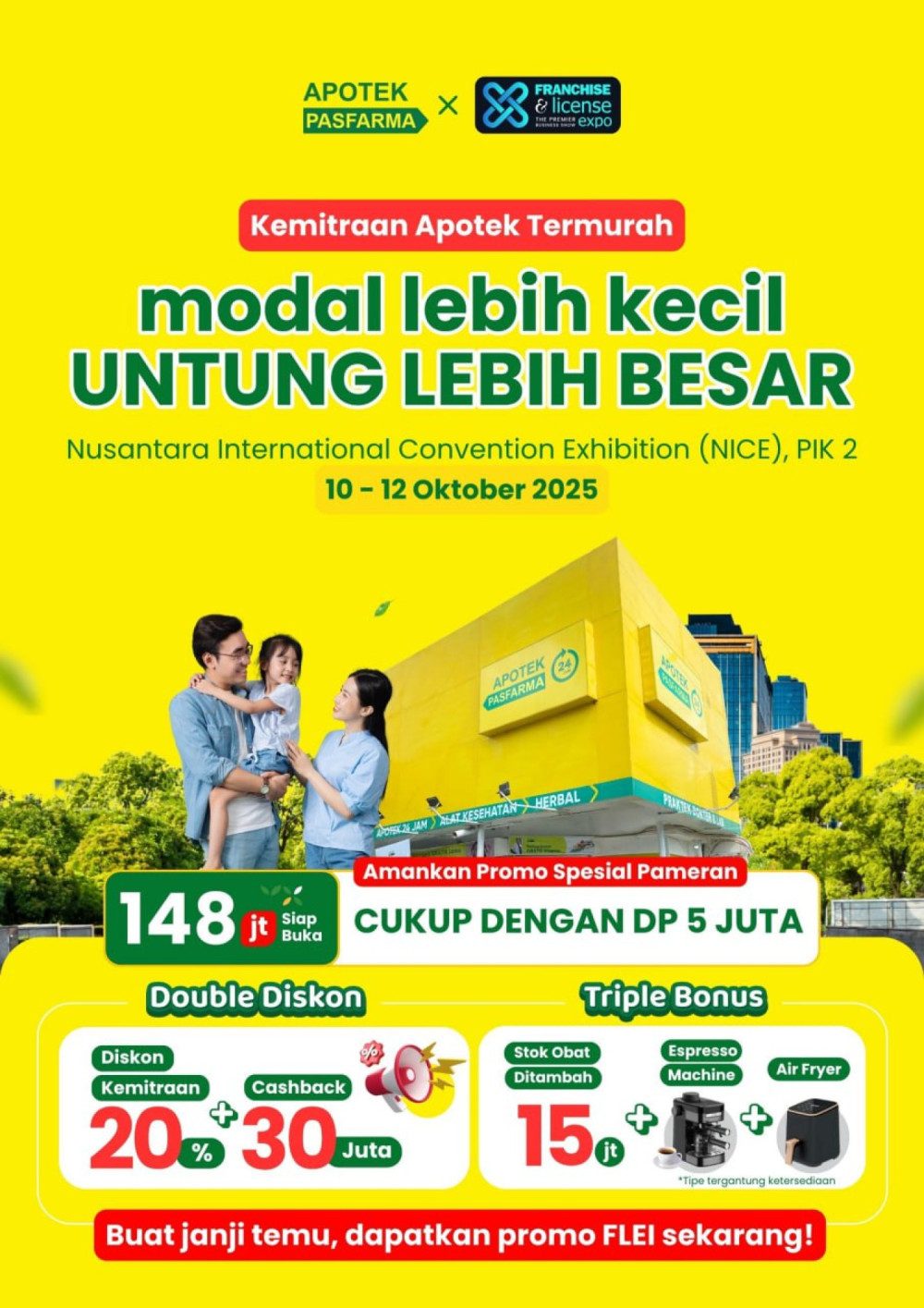 #FranchiseApotek #ApotekPasfarma #FLEI2025 #InvestasiSehat #PeluangUsaha #franchisetermurah #BisnisApotek"