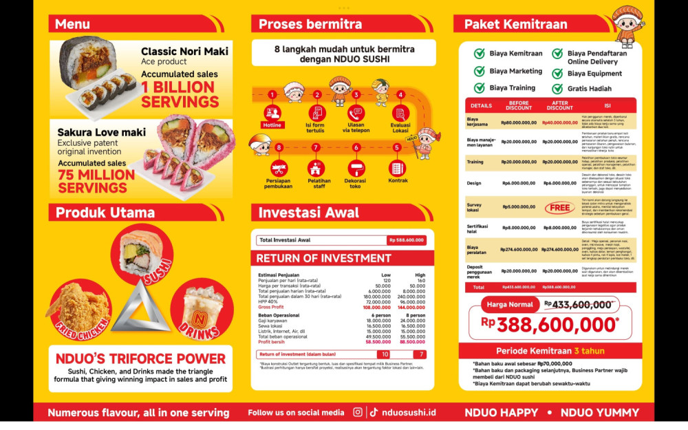 Harga coret dari 400jtan jadi 300jtan! Tunggu apa lagi, yuk bermitra dengan NDUO SUSHI!