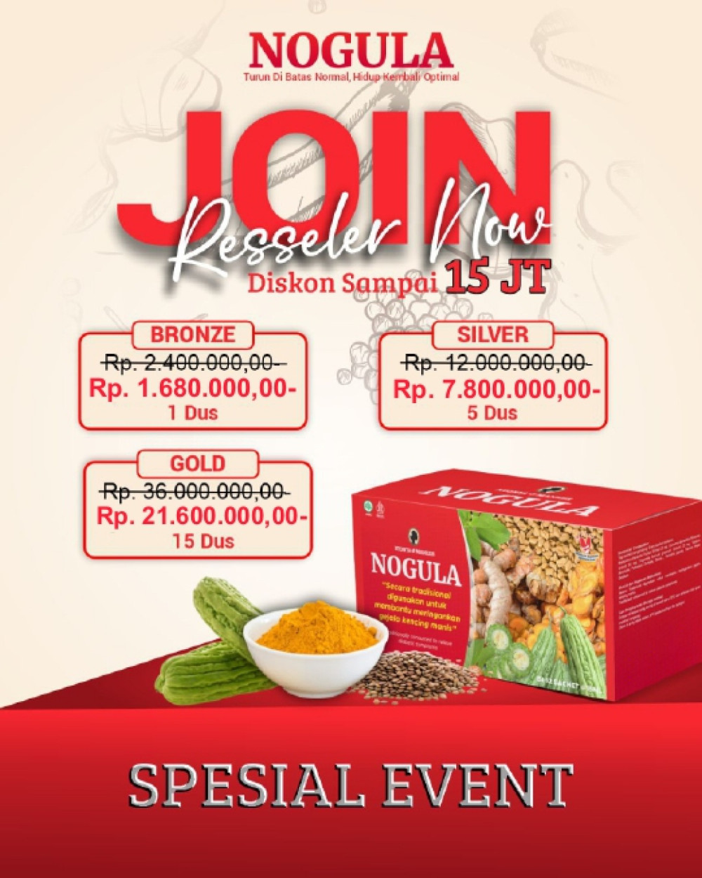 Nogula adalah brand herbal untuk membantu menjaga keseimbangan gula darah. Terbuat dari pare, kunyit, dan biji kelabat, ramuan herbal turun-temurun ini diproses modern dan dikemas praktis. Nogula bukan hanya untuk penderita gula darah, tapi juga untuk kamu yang ingin hidup sehat sejak dini. Gulamu jinak, harimu enak!