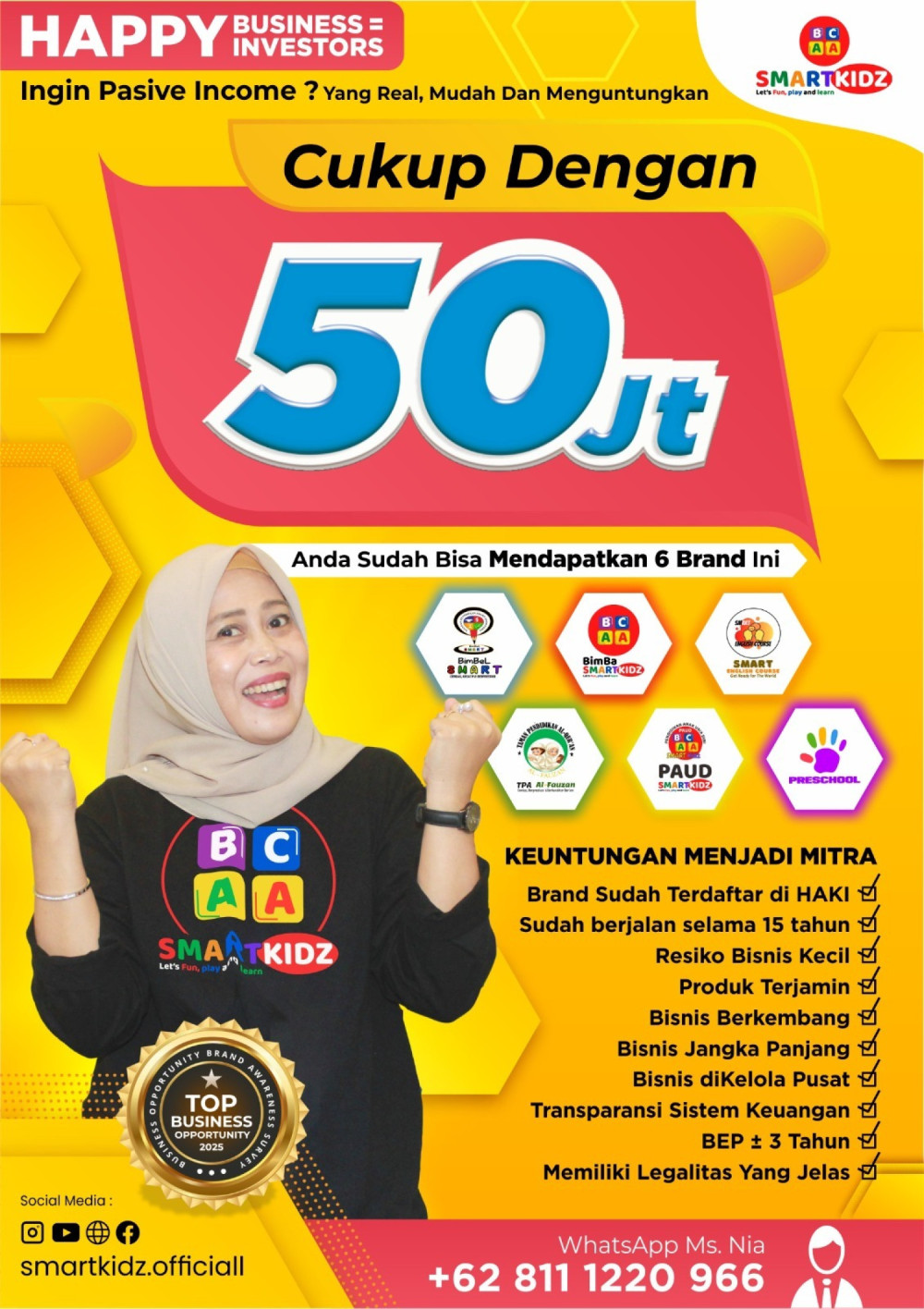 Dengan investasi mulai dari Rp 50 Juta, kamu bisa memiliki Smartkidz Education Center @smartkidz.officiall 🎉